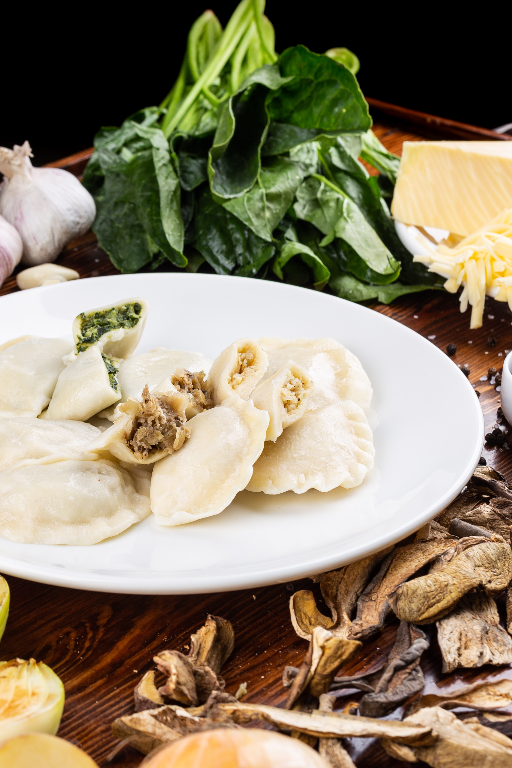 Wegetariańska pokusa (słowiańskie, ruskie, ze szpinakiem) Vegetarian mix (slavic, ruskie, with spinach)
